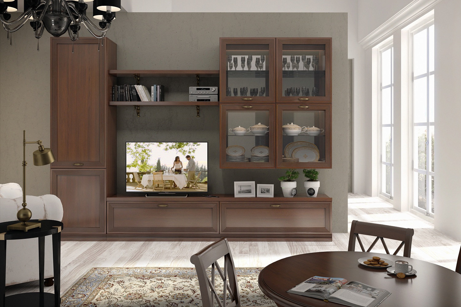 Когда моя старшая сестра закончила ремонт в гостиной, мы вместе отправились выбирать мебель. Хотелось чего-то классического, но без излишней вычурности — и тумба Адажио под телевизор стала идеальным решением!