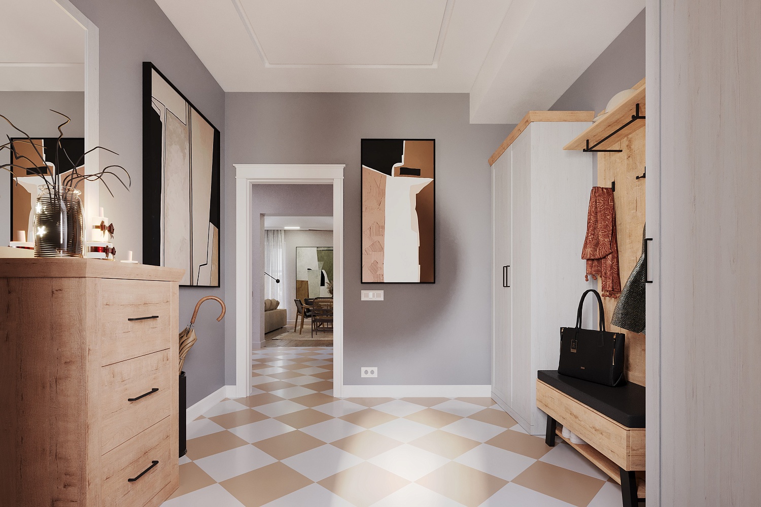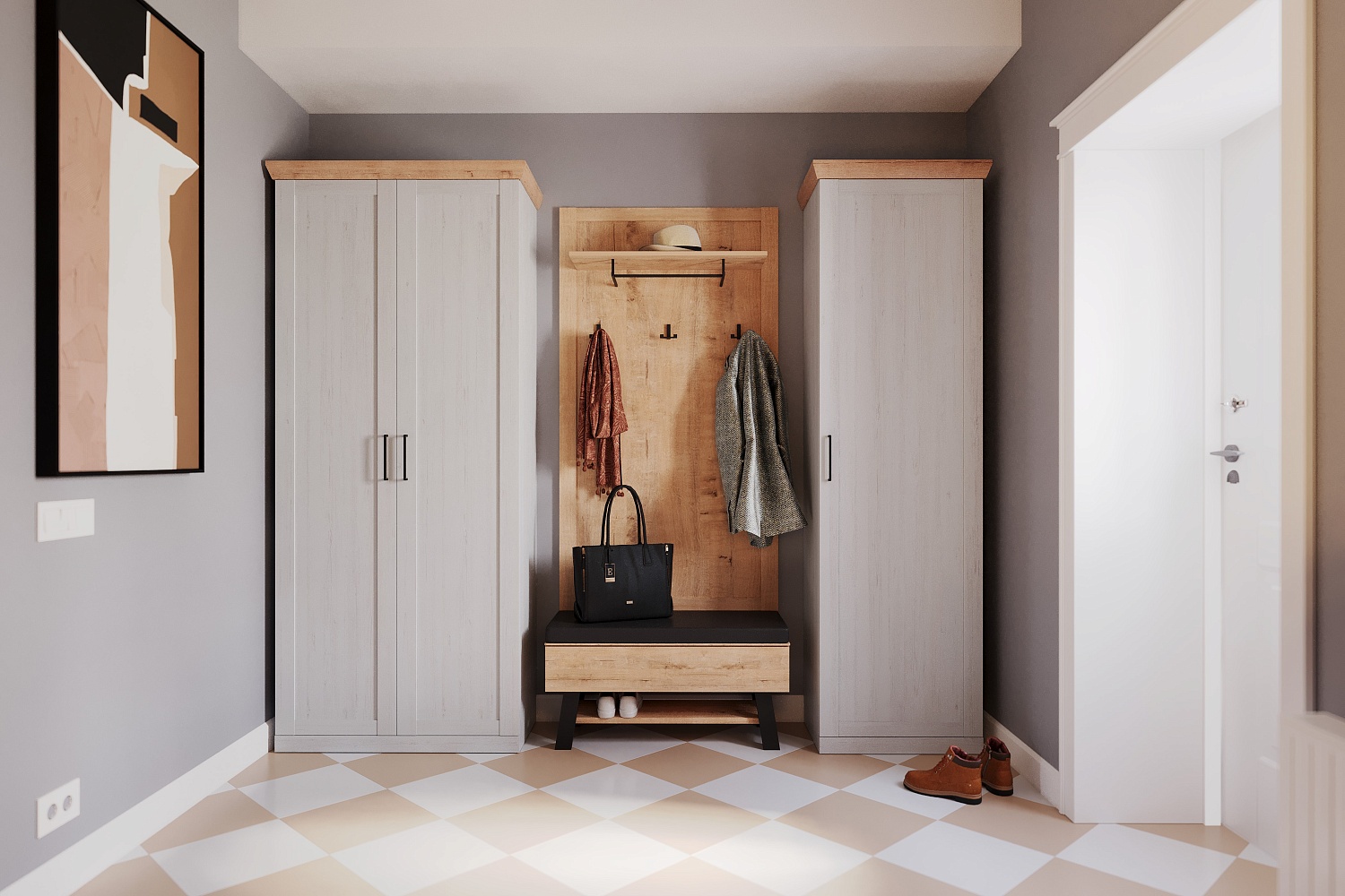 – описание: цвет дуб бунратти, блан шене, стиль современный, минимализм, назначение для прихожей.