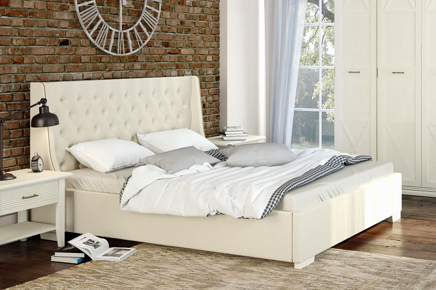 – описание: стиль английский, кантри, неоклассика, размер спального места 160 х 200 см, назначение для спальни, материал обивки экокожа.